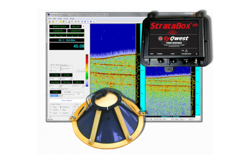 The StrataBox HD TM is a portable high-resolution marine sediment imaging instrument capable of delivering 6cm of marine sediment strata resolution with bottom penetration of up to 40 meters. It is designed exclusively for inshore and coastal geophysical marine survey up to 150 meters of water depth.