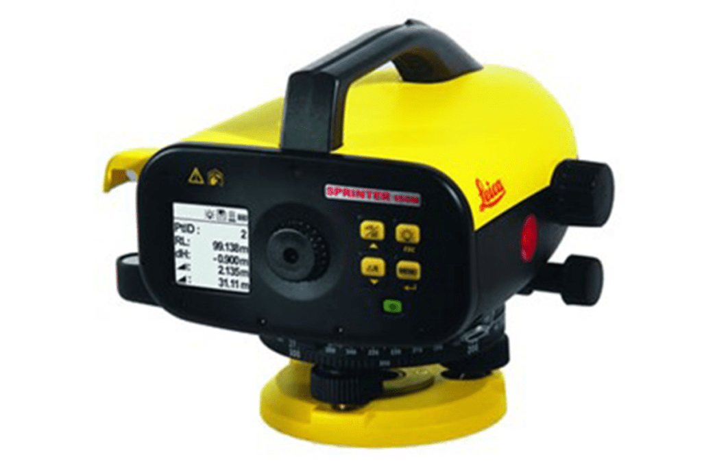 Modern surveying equipment for measuring height differences and distances with high accuracy.